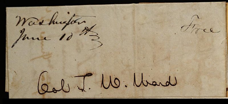 matching "Free" on Feb. 1845 two-page folded letter to Austin, Ward
