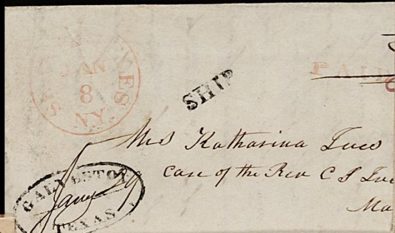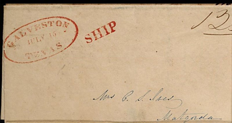 Galveston Ship ms. postmark and matching "18 3/4"