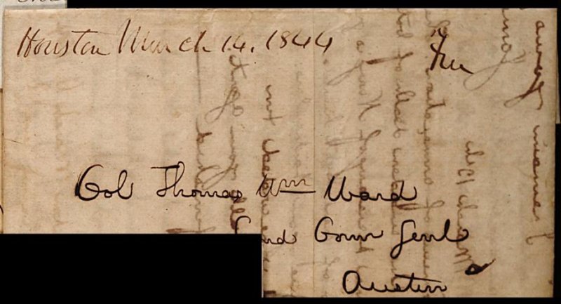 Houston March 14, 1844 ms. postmark and matching
