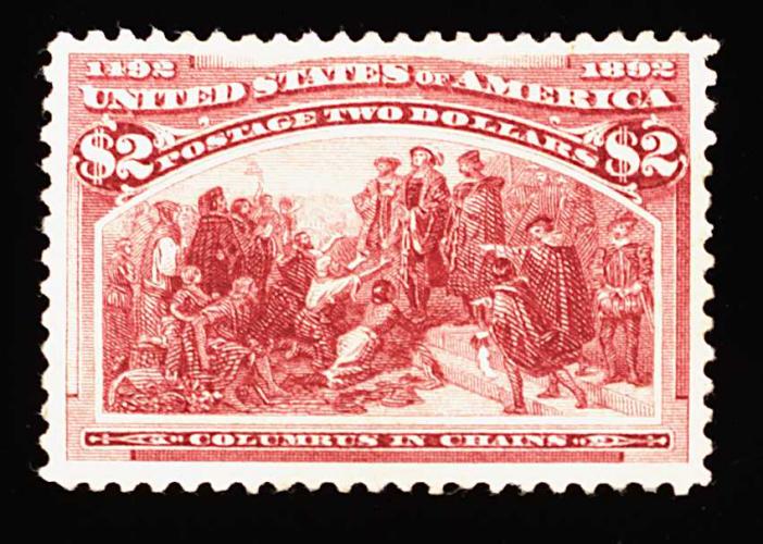 262 og 242 image#242, $2.00 Columbian, a particularly attractive mint single, featuring rich luxuriant color and an especially crisp detailed impression, outstanding centering within large margins, o.g., extremely fine; 1999 PF certificate. (Image) 1,550.00