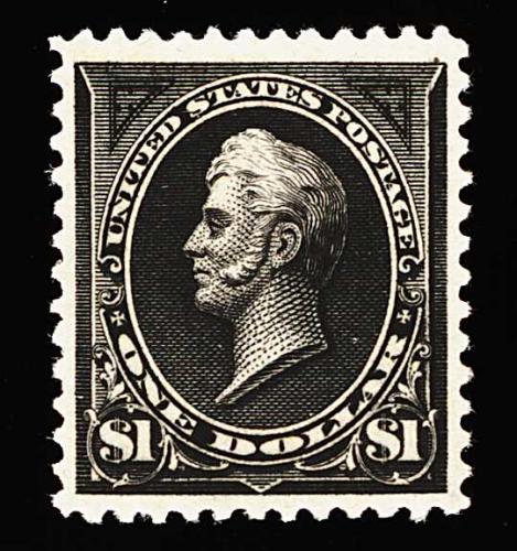 298 og 261A image#261A, $1.00 Black, Ty. II, a spectacular mint example of the most difficult of all the high value Bureau issues to find in true gem quality, as this stamp is almost never found with sizable margins or terribly well centered, however the example offered here boasts centering and margins that are the exact opposite of what is normally encountered, featuring enormously large and perfectly balanced margins all around, additionally its overall eye appeal is enhanced by its extraordinary intense "jet" black color and a clarity of impression seldom seen, all on brilliantly fresh paper which also boasts full and even perforations all around, unblemished o.g. with just the faintest suggestion of a hinge mark, extremely fine; an enormously rare and desirable stamp in this superb condition; 1999 PF certificate. (Image) 2,200.00