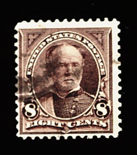 299 O 272a image#272a, 8c Violet brown, watermarked "USIR" in error, used, with a clear "I" in watermark, rich color, diagonal crease, nearly very fine appearance; a greatly undervalued stamp; accompanied by a large piece of selvage showing a complete "I" and partial "R" in watermark. (Image) 175.00