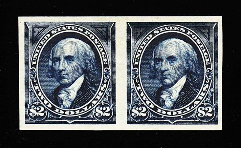 306 og 277b image#277b, $2.00 Bright blue imperforate, a gem horizontal pair of this important rarity, with only 50 pairs printed, uniformly large margins all around, gloriously rich color, full clean o.g., extremely fine; 1991 PF and 1992 PSE certificates; ex-Weisman. (Image) 5,000.00