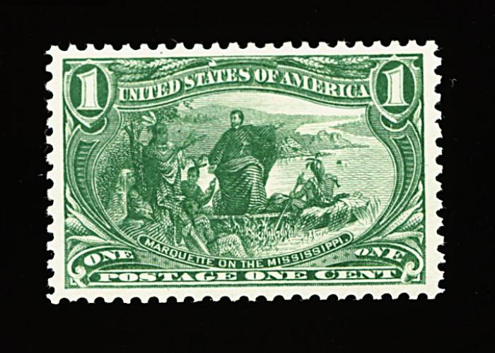 311 nh 285 image#285, 1c Trans-Mississippi, a gem mint single that is exceptionally well centered within lavishly large margins, extraordinarily vibrant color, pristine o.g., n.h., extremely fine; not your "typical" quality example; 1999 PF certificate for a vertical pair, this being the bottom stamp. (Image) 52.50