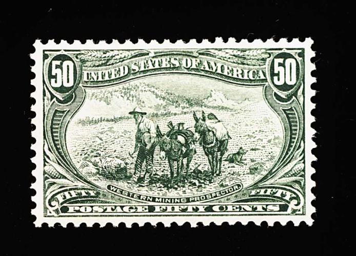 333 nh 291 image#291, 50c Trans-Mississippi, exceptionally fresh color and paper, unblemished o.g., n.h., nearly very fine; never hinged examples of this are not easy to find; 1998 PSE certificate for a block of four, this being the bottom right stamp. (Image) 1,100.00