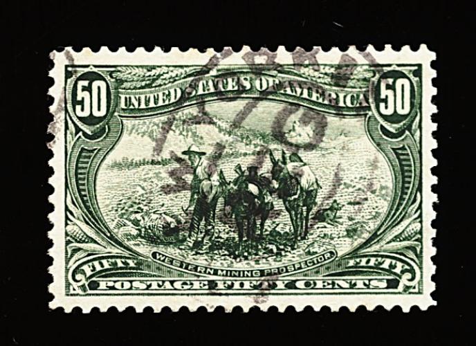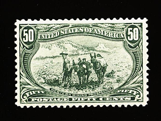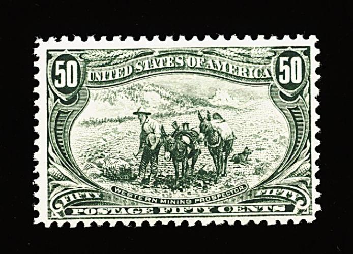 331 ng 291 image#291, 50c Trans-Mississippi, exceptionally well centered, with unusually large margins all around, deep rich color, unused, regummed over a small repair at top center, still of extremely fine appearance; 1996 PF certificate. (Image) 625.00