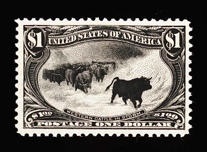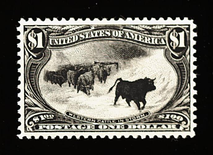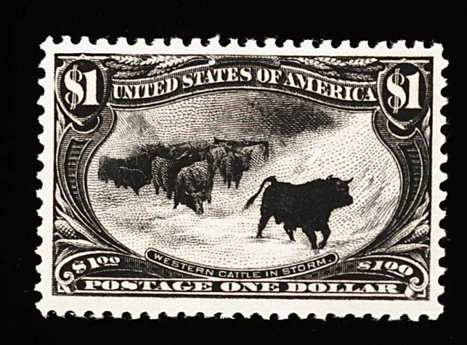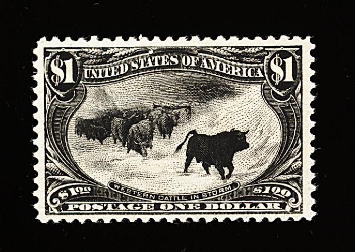 336 og 292 image#292, $1.00 Trans-Mississippi, an impressive mint single, with strong rich color and a crisp impression on clean paper, very well centered within large margins, full clean o.g., lightly hinged, extremely fine overall; 1999 PF certificate. (Image) 1,250.00