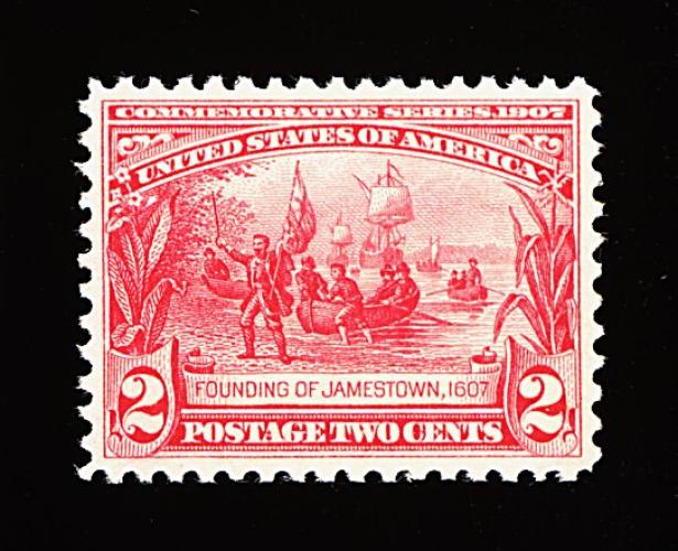 385 nh 329 image#329, 2c Jamestown, beautifully centered within uncharacteristically large margins for this issue, lovely radiant color, o.g., n.h., extremely fine; actually quite scarce in this gem condition; 1992 PF certificate. (Image) 62.50