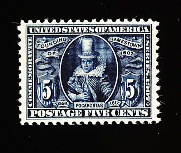 386 nh 330 image#330, 5c Jamestown, a premium mint example of this always difficult stamp to find both well centered and margined, this particular copy features much larger margins than usual and being quite well centered within them, luxuriously rich color and a clean crisp impression, brilliant o.g., n.h., extremely fine; 1993 PF certificate. (Image) 240.00