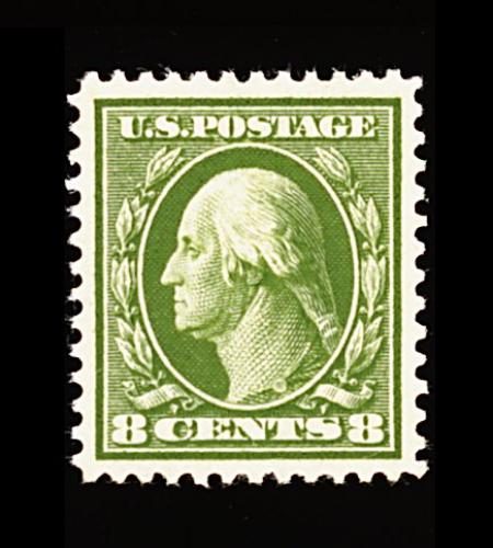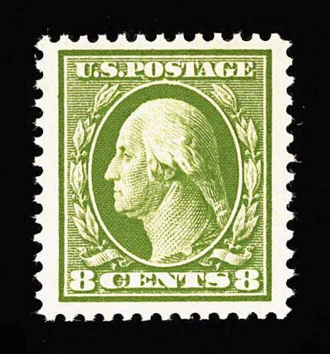 441 nh 380 image#380, 8c Olive green, a lovely mint single that features extravagantly large margins all around and is incredibly well centered as well, plus its color is uncommonly strong and rich, unblemished o.g., n.h., extremely fine and choice; 1996 PF certificate. (Image) 180.00