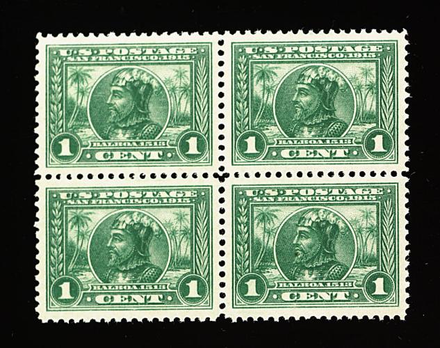 465 nhbl 397 image#397, 1c Panama-Pacific, gem mint block of four, each stamp being marvelously well centered within lavishly large margins, rich color, o.g., n.h., extremely fine. (Image) as n.h. singles 116.00+