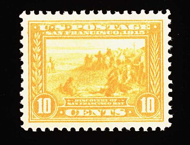 476 nh 400A image#400A, 10c Panama-Pacific, orange, a marvelous mint single in a quality that is not often found, being incredibly well centered within extravagantly large margins, additionally its color is an eye-arresting vibrant shade and its impression razor sharp on bright paper, pristine o.g., n.h., an extremely fine large-margined gem. (Image) 350.00