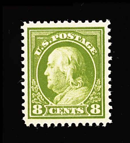 498 nh 414 image#414, 8c Pale olive green, extraordinarily large margins all around and exceptionally well centered within them, gorgeous intense color, o.g., n.h., extremely fine and quite choice. (Image) 75.00