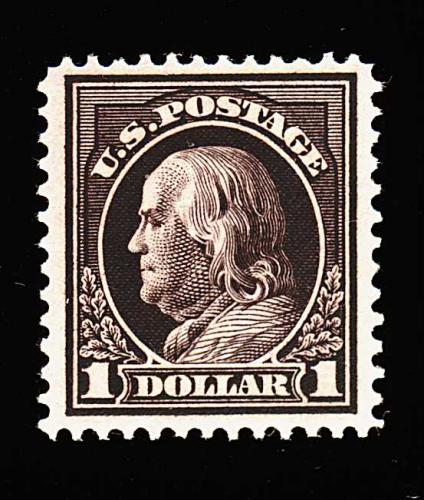 521 nh 423 image#423, $1.00 Violet brown, an exceedingly choice mint single in a quality that is seldom encountered on this high value, with deep luxuriant color and a razor-sharp impression, excellent centering within unusually large margins, o.g., n.h., extremely fine; #423's in this superior never hinged condition are terribly elusive; 2000 PF certificate. (Image) 875.00