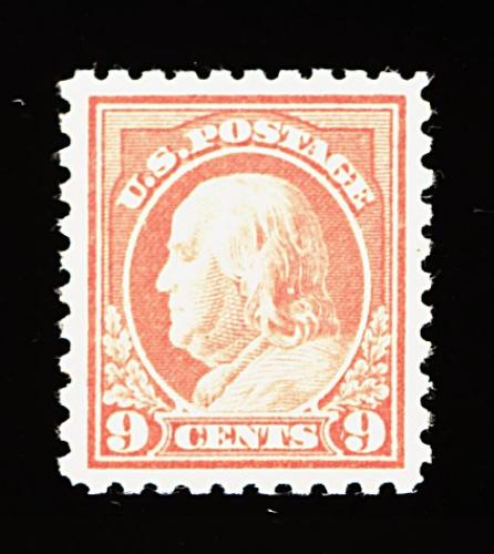 533 nh 432 image#432, 9c Salmon red, flawlessly centered within uncharacteristically large margins, strong color for this shade, unusually even and intact perforations all around, o.g., n.h., an extremely fine gem. (Image) 82.50