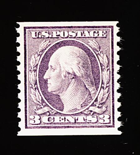 571 nh 456 image#456, 3c Violet rotary coil, Ty. I, perf. 10 vert., "post office" fresh mint single, bright fresh color and a crisp detailed impression, marvelously well centered and margined, pristine o.g., n.h., extremely fine; 1997 PF certificate. (Image) 375.00