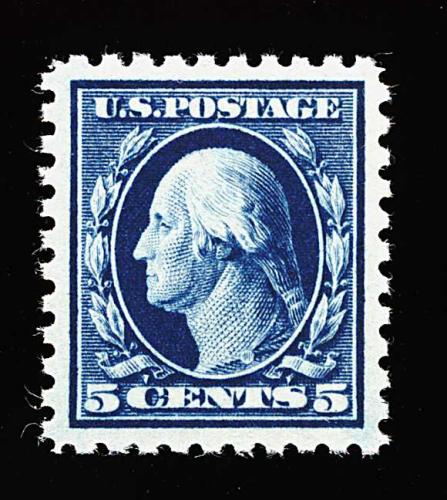 587 nh 466 image#466, 5c Blue, seldom seen gem mint single, with extravagantly large and perfectly balanced margins all around, sumptuously rich color and impression, o.g., n.h., extremely fine; a very scarce stamp so choice; 1995 PF certificate. (Image) 120.00