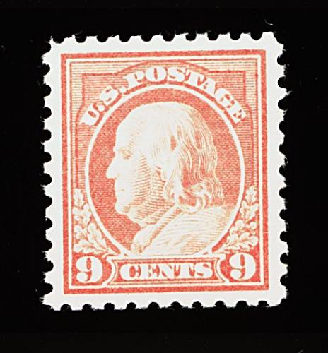 594 nh 471 image#471, 9c Salmon red, essentially perfectly centered, with extravagantly large margins all around, strong rich color on bright fresh paper, o.g., n.h., extremely fine; a very scarce stamp in this gem condition; 1989 PF certificate. (Image) 97.50