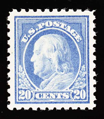 601 nh 476 image#476, 20c Light ultramarine, an exceedingly choice example of this difficult value, possessing flawless centering amid considerably larger margins than usual, strong fresh color and impression on immaculately white paper, uniformly even and intact perforations, pristine o.g., never hinged, extremely fine; a highly desirable and scarce stamp in this superb condition. (Image) 390.00