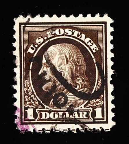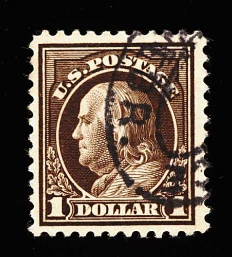 644 O 518b image#518b, $1.00 Deep brown, rich true color, very large margins, light Sandusky, Ohio oval cancel, a very fine example of this very elusive color error; 2000 PF certificate. (Image) 1,000.00