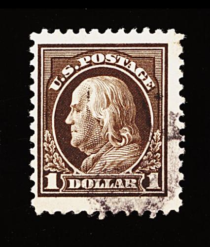 642 O 518b image#518b, $1.00 Deep brown, an exceedingly rare used example of this often misidentified shade, being in far superior quality than the majority of used examples of this, as most are found either terribly off center or, more often than not, with faults; this particular example is completely fault-free, additionally it is quite well centered and margined, with strong unmistakable "deep brown" color (actually a misnomer, as this shade must display strong undertones of yellow to be a true #518b), neat oval pmk., very fine and choice; actually one of the rarest stamps in the entire sale both in terms of number known and condition; 1983 and 1999 PF certificates. (Image) 1,000.00