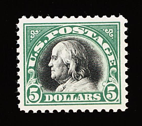 648 nh 524 image#524, $5.00 Deep green and black, highly select mint example, outstanding centering within large margins, brilliantly fresh colors and paper, unblemished o.g. without any of the usual gum bends or skips, n.h., an extremely fine gem; 1997 PF certificate for a block of four, this being the bottom right stamp. (Image) 350.00