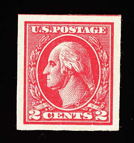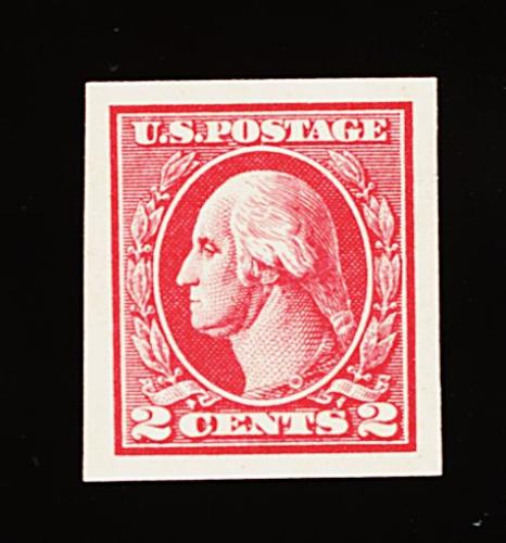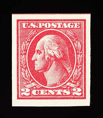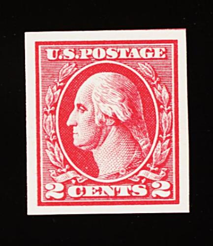 657 nh 534B image#534B, 2c Carmine offset imperforate, Ty. VII, a superlative mint example of this stamp that was originally produced for the exclusive use of private vending and affixing machine companies who would apply their unique "perforations", however a small supply of imperforate stamps did reach the public; only a tiny portion of the stamps in collector hands today are found in the extraordinary quality of the example offered here, as it is in a condition that would please even the most fastidious collector, being marvelously fresh and bright, with radiant color on immaculate paper, four lavishly large and perfectly symmetrical margins, pristine o.g. without a single gum bend or skip, never hinged, superb; among the very finest mint never hinged Ty. VII imperforates we have ever offered; 1984 PF certificate for a block of four, this being the top right stamp, plus a 1999 PF certificate as a single. (Image) 3,000.00