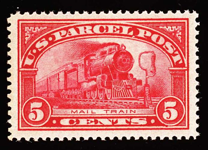 784 nh Q5 image#Q5, 5c Parcel Post, a magnificent jumbo-margined mint single, possessing enormously large margins that are most impressive, and being flawlessly well centered within this vast expanse, gloriously rich color, immaculate o.g., n.h., an extremely fine jumbo that would please even the most fastidious collector; 1994 PF certificate for a strip of four from which this stamp was taken. (Image) 52.50