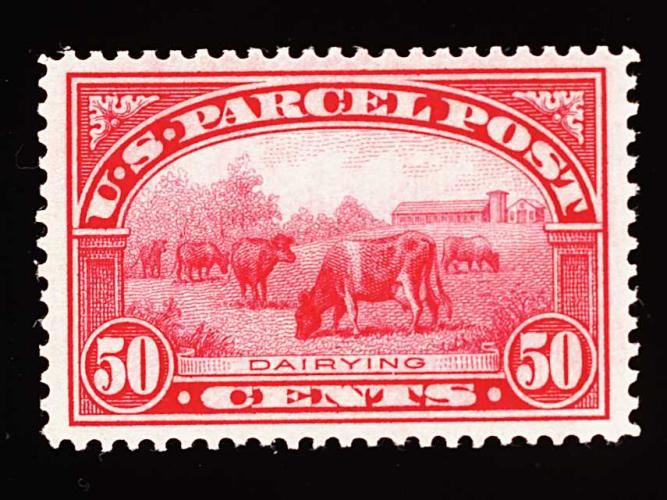 795 nh Q10 image#Q10, 50c Parcel Post, another remarkably choice mint single, featuring extravagantly large margins all around, wonderfully well centered, sumptuously rich color, o.g., n.h., extremely fine. (Image) 450.00