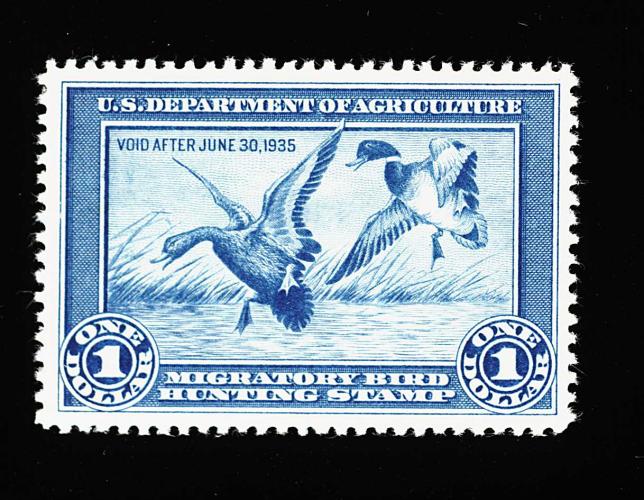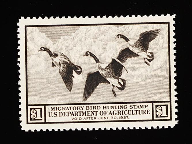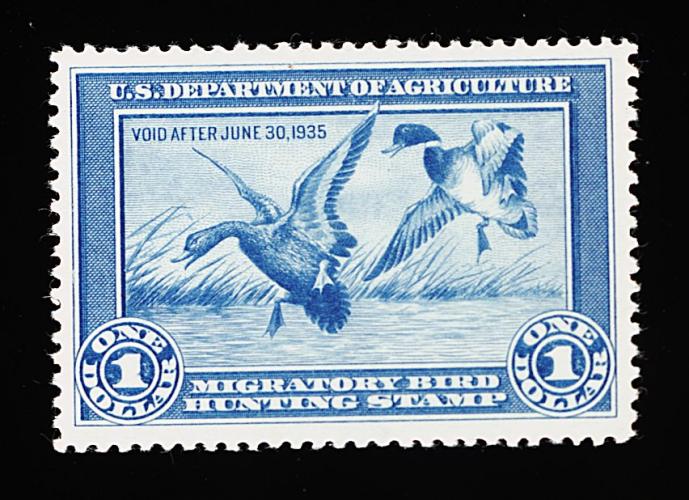 863 nh RW1 image#RW1, 1934 $1.00 Blue, wonderfully well centered within lavishly large margins, rich luxuriant color on fresh paper, o.g., n.h., extremely fine; a handsome example of the first duck stamp; 2000 PF certificate. (Image) 700.00