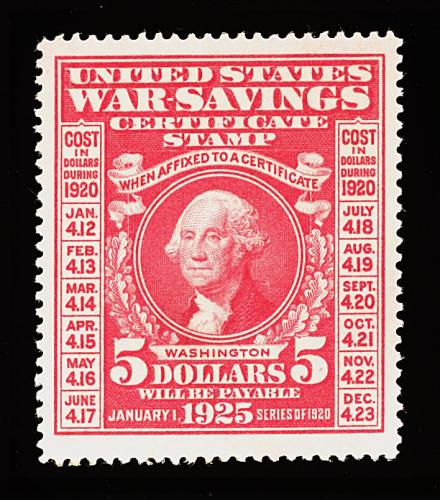 871 og WS5 image#WS5, $5.00 Carmine War Savings, unusually well centered within large margins, strong bright color, full o.g. which has been just slightly redistributed, very fine; 2000 PF certificate. (Image) 800.00