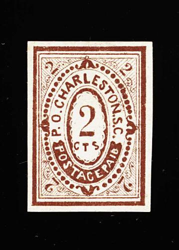 873 E E-11 imageDietz #E-11, Charleston, S.C., 2c Brown essay on wove, large even margins all around, fresh color, small thin spot, extremely fine appearance; a very scarce essay; 1988 PF certificate; ex-Krieger. (Image) Est. 750-1,000