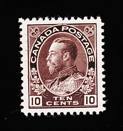 943 nh 116 image#116, 10c Plum, a magnificent mint example of the most difficult value of all the "Admirals" to find in premium quality, this stamp boasts perfect centering within incredibly wide margins, but just as impressive is the stamp's deep intense color and razor-sharp impression on clean whit paper, pristine o.g., n.h., an extremely fine gem for the perfectionist; 2000 PF certificate (Unitrade C$900.00). (Image) 450.00