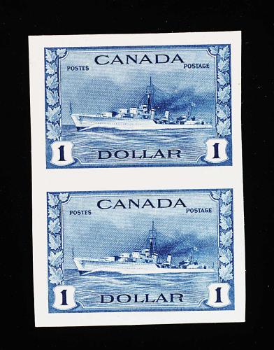 948 og/nh 249d-262a image#249d-262a, 1942-43 1c-$1.00 War issue, imperforate cplt., 1c-10c in horizontal pairs, 13c-$1.00 in vertical pair, each with large margins all around, o.g., 10c and 13c lightly hinged, others n.h., very fine; only 50 imperforate pairs of the 13c-$1.00 were printed (Unitrade C$7,600.00). (Image) 4,125.00