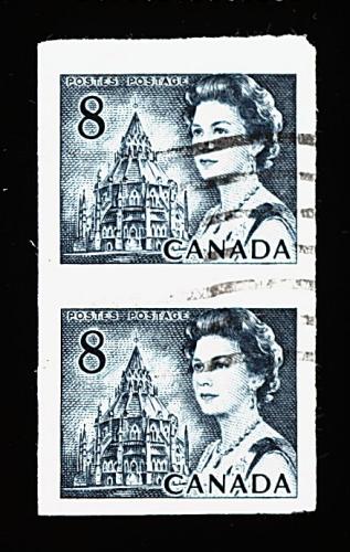 949 O 550a image#550a, 1971 8c Slate coil, imperforate, used pair, large margins, wavy machine cancel, trivial thin spot in margin, otherwise very fine; very scarce used and unpriced as such in Scott and Unitrade. (Image) Est. 200-300