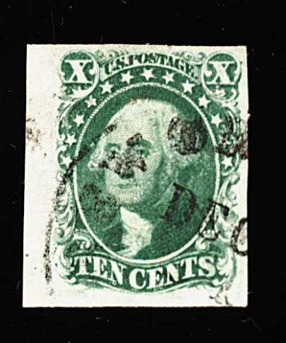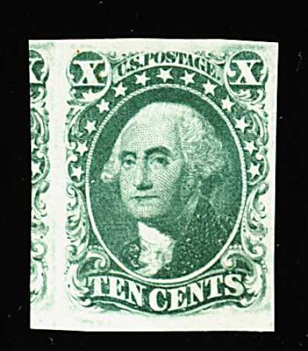 100 ng 15 image#15, 10c Green, Ty. III, a scarce unused example, with lavishly large margins all around, including an enormous margin at left which incorporates a significant portion of the adjoining stamp, uncommonly fresh for a stamp of this vintage, with prooflike color and impression on bright paper, miniscule pinhole and a tiny age spot at top left, otherwise extremely fine; 2000 PF certificate. (Image) 1,600.00