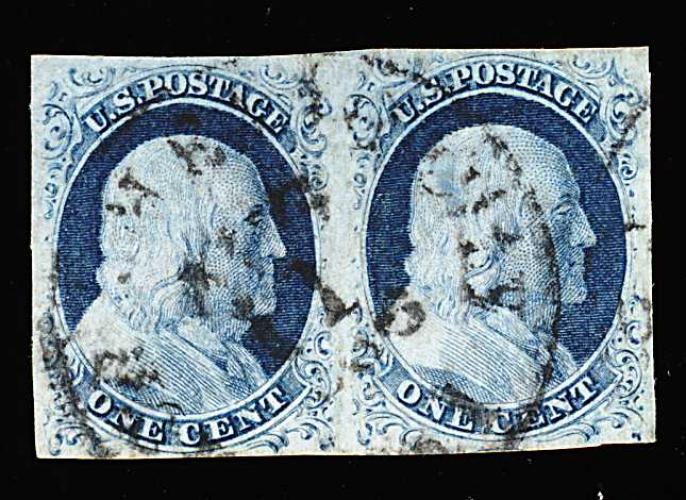 87 O 8A image#8A, 1c Blue, Ty. IIIa, a particularly handsome used example, showing a clear large break in the bottom line, large margins all around, including a portion of the adjoining stamp at right, rich color and a strong early impression, light unobtrusive town c.d.s., extremely fine. (Image) 975.00