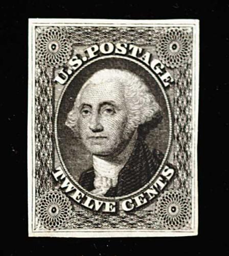 117 ng 36b image#36b, 12c Black, plate III, unused, absolutely flawlessly centered which is almost unheard of on this issue, strong color, an extremely fine gem; 1984 PF and 1990 PSE certificates; ex-Weisman. (Image) 375.00