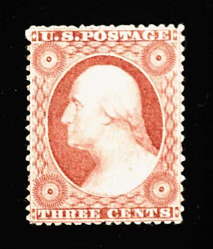 111 og 25 image#25, 3c Rose, Ty. I, the mint single offered here is one of the finest examples of this rare stamp we have offered in some time, as it possesses an overall freshness and brilliance that is very rarely encountered, with a spectacular resplendent color and a deeply etched impression, in addition the stamp is perfectly centered which is a very rare occurrence, full original gum which has been lightly hinged, extremely fine; actually one of the rarest stamps in the sale in terms of overall condition; 1998 PF certificate. (Image) 2,000.00