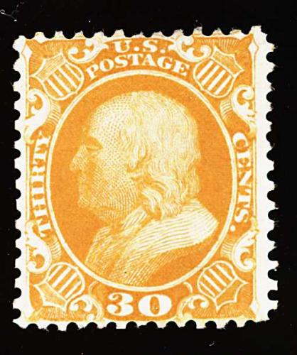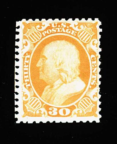 134 og 71 image#71, 30c Orange, an especially fresh and choice mint example, possessing intensely rich color and a crisp detailed impression, well centered within uncharacteristically large margins, full original gum, while not perfectly centered, the stamp is unusually choice and very fine considering it impressive overall attributes; 1998 PF certificate. (Image) 1,250.00