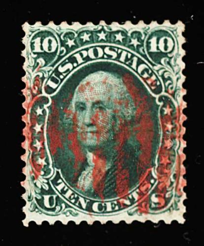 127 O 62b image#62B, 10c Dark green "August", an outstanding used example of this scarce stamp, in a quality that is almost never encountered, featuring near perfect centering, but just as impressive is the stamp's deep luxuriant color in an unmistakable "August" shade and a razor-sharp impression, a bright vivid red grid cancel further contributes to the stamp's exceptional eye-appeal, an extremely fine gem in every regard; 1999 PF certificate. (Image) 860.00