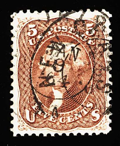 136 O 75 image#75, 5c Red brown, a remarkable used single, possessing enormously large margins for this tightly-spaced stamp, very well centered as well, incredibly deep luxuriant color, town cancels, an extremely fine gem with tremendous eye-appeal; 1997 PF certificate. (Image) 450.00