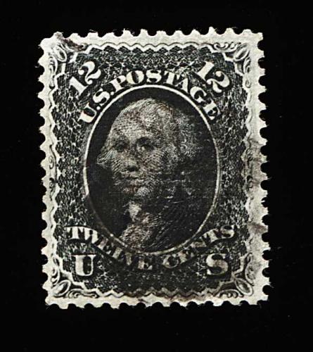 142 O 85E image#85E, 12c Black, "Z" grill, a highly select used example of one of the most difficult of all the grilled stamps to find in premium quality, this stamp boasts excellent centering amid margins that are exceptionally large, deep color and a strong impression, extremely fine; a truly rare stamp in this outstanding condition; 1999 PF certificate. (Image) 1,100.00