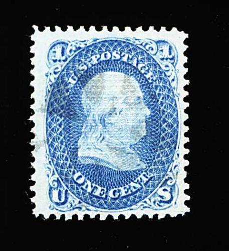 143 O 86 image#86, 1c Blue, "E" grill, very well centered within enormously large margins for this difficult stamp, strong rich color and a highly detailed impression, lightly cancelled, extremely fine overall; 1995 PF certificate. (Image) 450.00