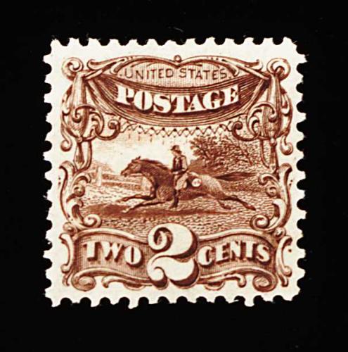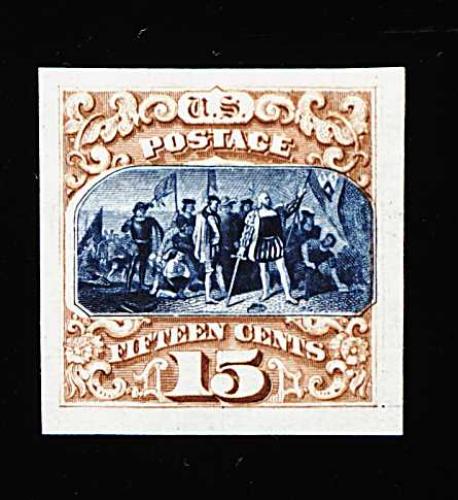 156 O 119 image#119, 15c Brown and blue, Ty. II, an exceptionally fresh used example, with incredibly deep vibrant colors and a prooflike impression, marvelously well centered and margined as well, lightly cancelled, extremely fine; an eye-catching gem; 1999 PF certificate. (Image) 250.00