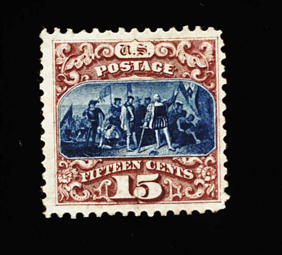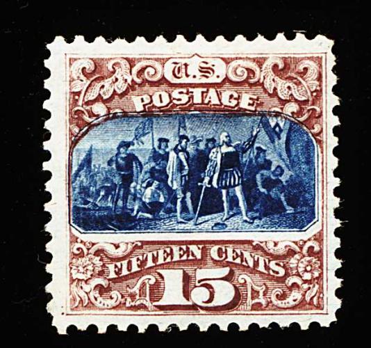 164 og 129 image#129, 15c Brown and blue re-issue, Ty. III, brilliantly fresh and choice mint single, with gorgeous colors and razor-sharp impressions, extraordinarily well centered within uncharacteristically large margins, full o.g., lightly hinged, extremely fine; a gem stamp with great eye appeal; only 1,981 issued; 1979 PF certificate; ex-Anderson. (Image) 1,800.00