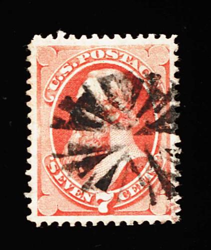 169 O 138 image#138, 7c Vermilion with grill, a marvelous used example of this grilled stamp, possessing physical characteristics seldom encountered, including being impeccably well centered within lavishly large and wonderfully well balanced margins, plus its color is bright and vivid, well defined grill, neat NYFM circle of wedges cancel, extremely fine; a true condition rarity; 1998 PF certificate. (Image) 400.00