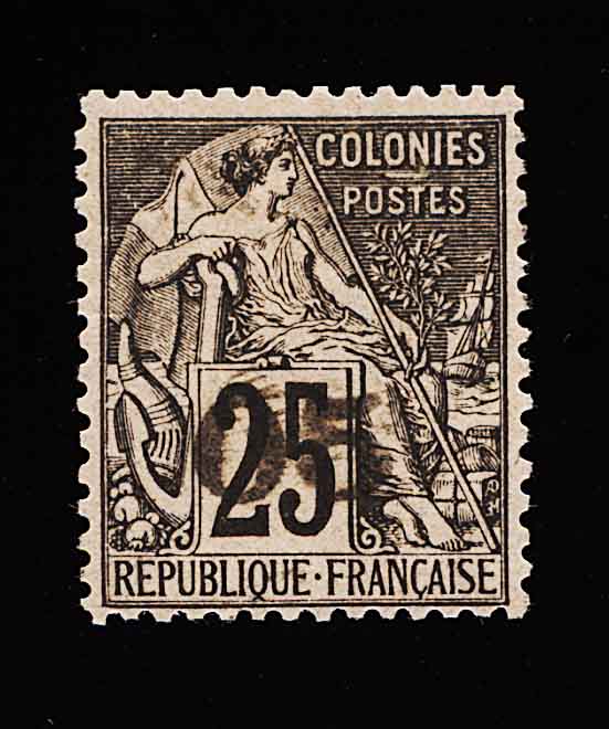 119 og 2 image#2, 1889 "05" Surcharge on 25c Black on rose, nicely centered, fresh, o.g., h.r., tiny tear in left margin, otherwise very fine; signed Roumet (Yvert #2; FF 5,250). (Image) 550.00