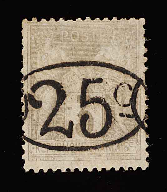 131 og 25 image#25, 1896 "25c" Surcharge on 3c Gray on grayish, nicely centered, o.g., h.r., faint trace of an internal crease, still a very fine example of this rare surcharge, which is seldom offered at auction; signed A. Brun (Yvert #25; FF 22,500). (Image) 2,000.00