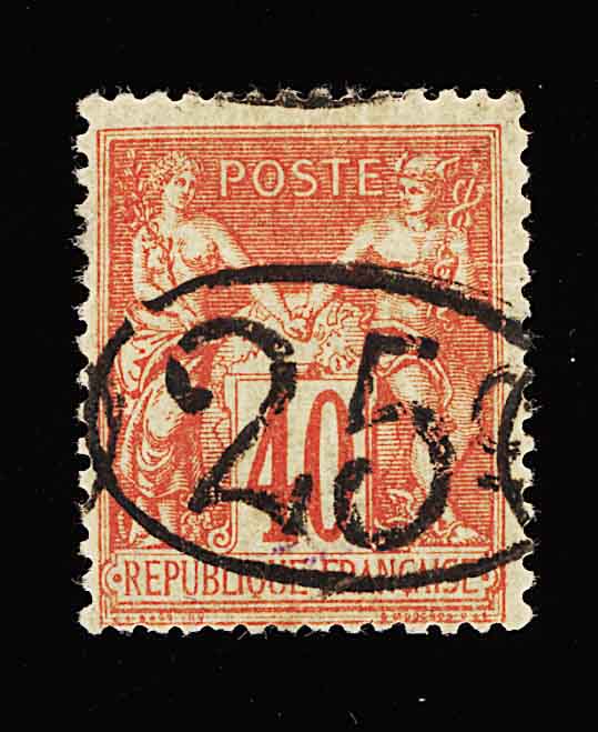132 og 27 image#27, 1896 "25c" Surcharge on 40c Red on straw, bright vibrant color, o.g., small h.r., light horizontal crease, fine appearance; a very scarce stamp which is seldom offered in any condition; signed several times (Yvert #27; FF 11,000). (Image) 1,050.00